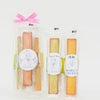 『ぶどうの女王』とも言われるマスカットオブアレキサンドリア。マスカットはぶどうの品種の中でも特徴的なじゃ香(ムスク)の香りを持ちます。桃子のひと時スティックケーキはそんなマスカットの魅力を大切に焼き上げました。マスカットの甘い香りと一緒にリラックスタイムの一品にお召し上がりください。ご希望のお客様には手提げ袋をお付けしておりますので、プチギフト等にもご利用ください。