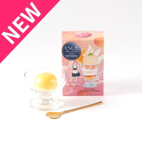 国産のもも・みかん・りんごを使い、果実感とプリンのなめらかさを大切に仕上げました。 華やかな甘み、爽やかさ、やさしいコク。 スプーンを入れるたび、果実の表情が変わる楽しいひと品です。 くらしき桃子の店舗でのみ販売している、新しい定番スイーツ。 ご自宅用にも、岡山土産にもおすすめです。