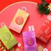 「おかやま桃子」の新春にピッタリな限定パッケージ!! 松竹梅に鶴亀、七宝(しっぽう)文様をあしらった春にふさわしい縁起の良いデザインです♪ 七宝文様には子孫の繁栄、人の縁・関係性の円満を志向する縁起の良いことを意味しています。 パッケージの中にはおかやま桃子の2個入が4箱入っています。 清水白桃ぷりん、金桃ぷりん、マスカットじゅれ、紫ぶどうアソートの4種類。新春のご挨拶や手土産や贈答にぜひご利用ください。