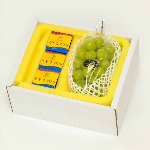 - シャインマスカット500g以上×1房、モモコプリン×3個(清水白桃、シャインマスカット、マルベリー&ブルーベリー)