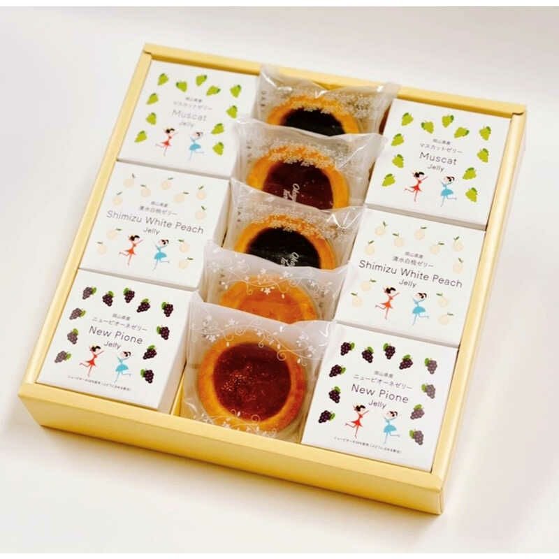 岡山県産果実のなめらかなゼリーと国産果実のコンフィチュールを流し込んだタルトの詰合せ。 福岡県産あまおう、青森県産りんご、岡山県産いちご、岡山県産ブルーベリー、岡山県産マルベリーのコンフィチュールを流し込んでしっとり焼きあげたタルトと、岡山県産果実(清水白桃、ニューピオーネ、マスカット)の素材本来の味わいや風味を楽しめる彩り鮮やかなゼリーを詰め合わせました。