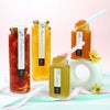 国産果実をコンポートとジャムで。 日本各地の名産果実の大ぶり果肉を甘さ控えめさっぱりとした口当たりのシロップとともに詰め込んだコンポートと、ピューレを使用し丁寧に煮詰めた風味豊かなコンフィチュールを、オリジナルの三角瓶で。