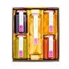 岡山県産のフルーツを旬の時期に収穫し、スイーツに仕上げました。 清水白桃のコンポート(シロップ漬け)とニューピオーネ、黄金桃のジュレ、シャインマスカットと桃太郎トマトのジャムをセットにしました。 限られた時期にしか味わえない美味しさをいつでもお好きな時に愉しめるセットです。